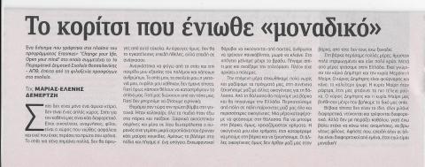 Our students participated in a national writing competititon about refugees organized by the Ministry of Education and the office of UNHCR in Greece. The subject was " a home far from home". The articles of our student published in National newspaper on 21th November